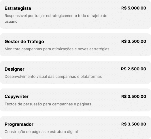 + tempo de gestão, treinamentos, encargos trabalhistas…